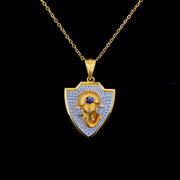This elegant Ganesha pendant necklace beautifully symbolizes wisdom, prosperity, and divine blessings. Crafted with a rich gold finish, the pendant features a finely detailed Lord Ganesha motif placed within a shield-shaped frame. The border is adorned with delicate white stone work that adds a subtle sparkle, while a striking blue stone accent on the crown enhances its spiritual and aesthetic appeal.