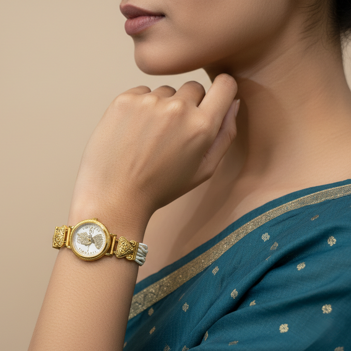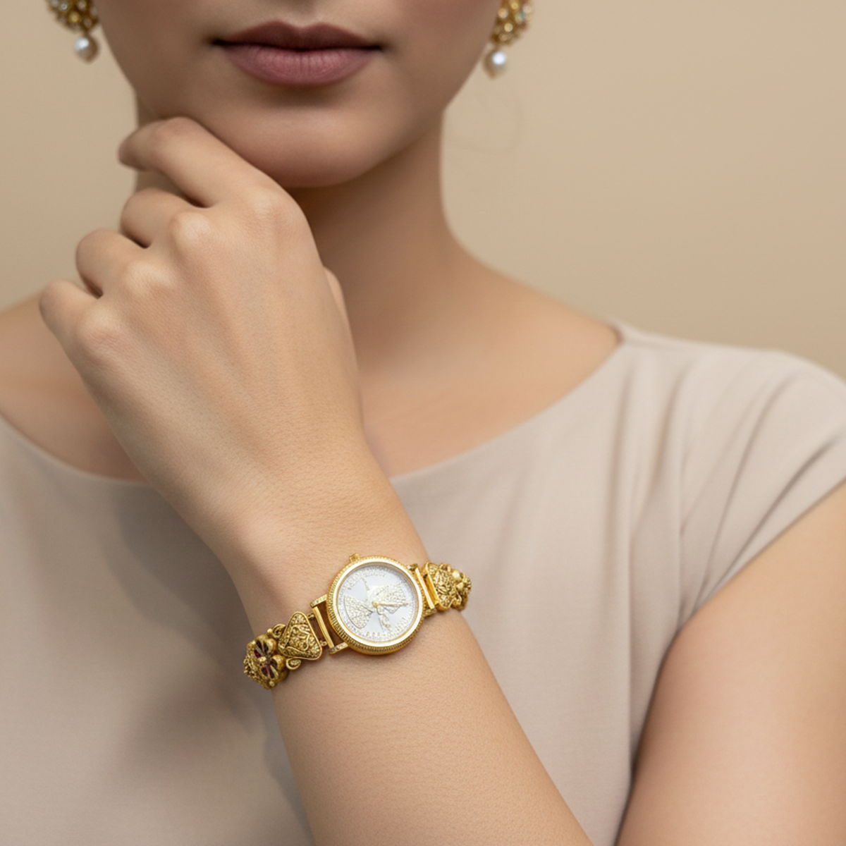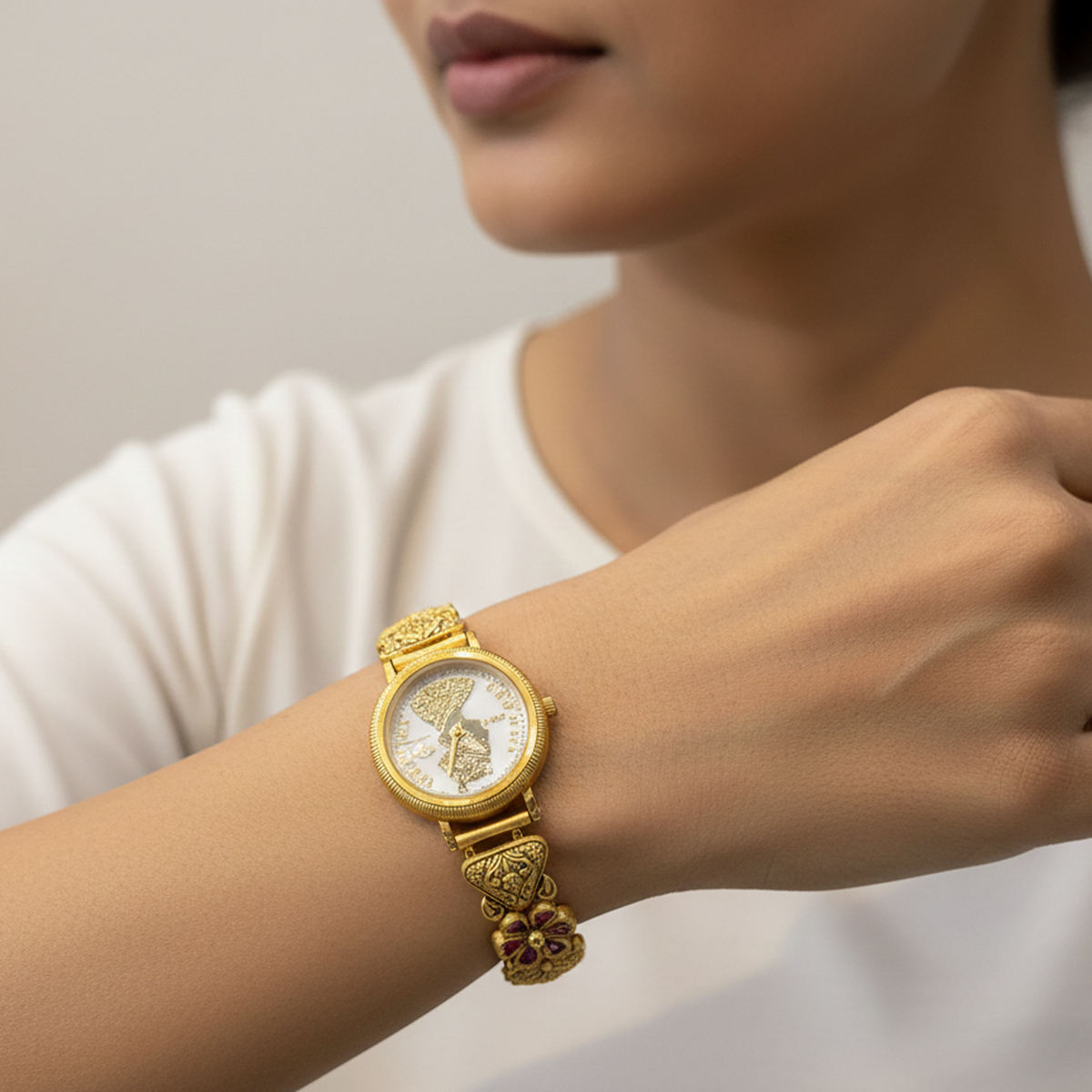 The fluid linked structure ensures a comfortable fit while allowing the bracelet to sit gracefully on the wrist. Its unique open-frame design gives it a lightweight yet bold appearance, making it ideal for both everyday wear and special occasions. Whether paired with western outfits or modern ethnic attire, this bracelet adds a refined and fashionable touch.